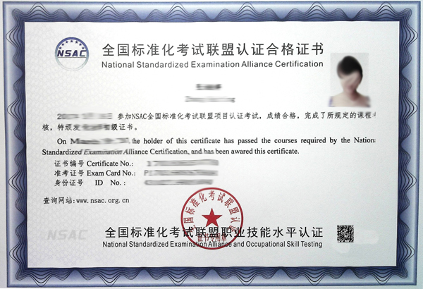 2017年NSAC标准化考试联盟认证证书改版