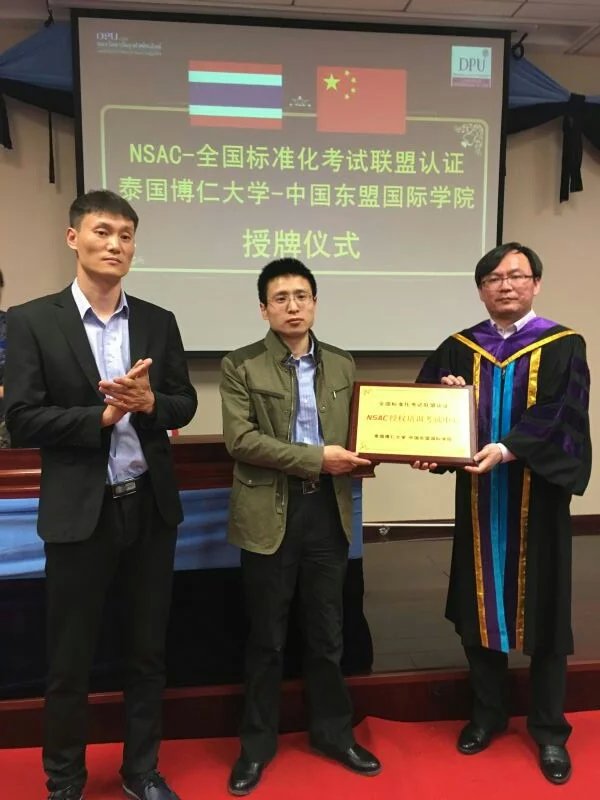 典礼现场,王长明院长代表泰国博仁大学中国东盟国际学院接受了NSAC全国标准化考试联盟认证的授权牌,泰国博仁大学-中国东盟国际学院成为NSAC的重要合作伙伴,NSAC将为博仁的学子提供优质的职业规划、认证培训;同时,泰国博仁大学-中国东盟国际学院也是NSAC首个国外合作伙伴的加盟,这为NSAC走向全球,做高标准的认证打下良好基础。博仁大学毕业典礼圆满成功,祝愿博仁大学的莘莘学子在未来更加辉煌。